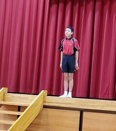 朝の時間に、1年生の学習表現集会を実施しました。自分で選んだ、英語、音楽、理科