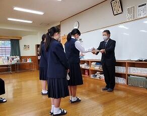 終業式の前に、表彰がありました。BFC作品に応募し入選しました。