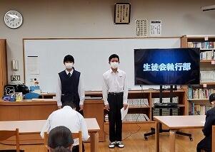 生徒集会がありました。各部・執行部からの報告がありました。また、朝活・言葉使い