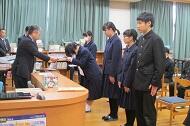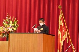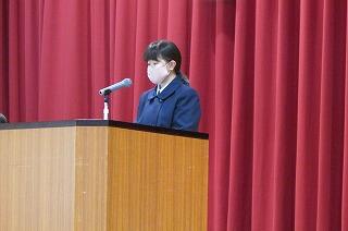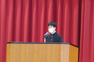 1・2年生がつくった応援メッセージを渡し、3年生が抱負を述べました。