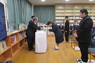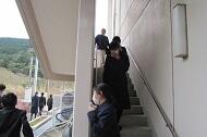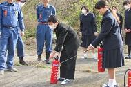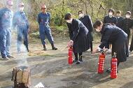 1月17日 火災想定の避難訓練を実施しました。島の消防団の皆様に消火器の使い方を指導していただきました。