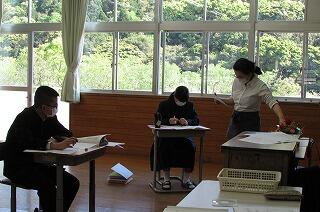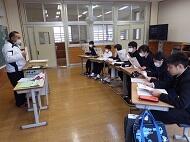 生徒は、9時30分までに登校し、補充学習を3時間行いました。その後、給食を食べ、連休中の過ごし方について、学習面・生活面・保健面の話を聞きました。