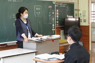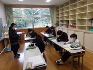 本校では、学力向上の一環として、生徒の実態に応じた内容のプリント等を準備して学びの定着を図る取組をしています。個の応じた指導を時間を確保して実践しています。