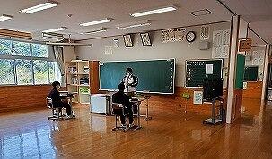 1学期の授業も本日からスタートしました。本校では、廊下側の壁が収納できるオープンスペース設計を活用して、コロナウイルス感染症拡大防止による対応して授業を実施しています。生徒の中には「広々の開放感!」という声も聞かれました。