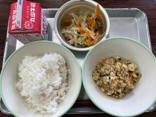 【麦ご飯 牛乳 マーボー豆腐 中華和え】