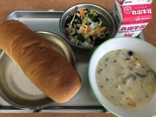【コッペパン 牛乳 コーンチャウダー 新玉ねぎのアーモンドサラダ】