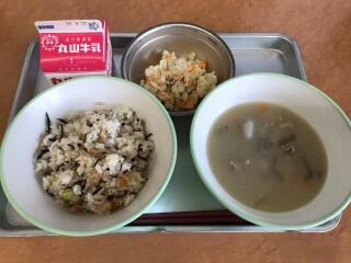 【ひじきご飯 牛乳 ぶた汁 ミルクおから】