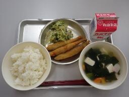 ごはん ししゃもフライ  ゆかり和え  すまし汁