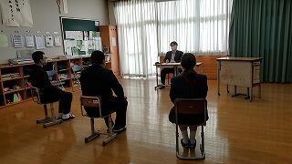 本日、3年生の面接指導に市教委の学校支援対策監を招いて実施しました。