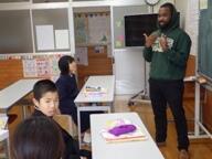 今日の英語の授業には、延岡市教育委員会のALTのアンドリュウ先生が来て下さり、子どもたちの指導をして下さいました。1年生の授業ではアニメのキャラクターになったつもりで「I’m ~ .」と英語で自己紹介をされ、それが誰なのかを子どもたちは考えていました。はじめはアニメのキャラクターであることも伏せて特徴を紹介されていたので、子どもたちも