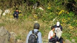今日は延岡市の昆虫研究家の方々と一緒に島野浦の山には入り、峠を越えて島の北東側の浜に降りていきました。12月に入り、寒くなったので「無理かもしれない」と言われていましたが、1匹だけ見つけることができました。今日見つけたアサギマダラには「SIMA10」とマーキングしました(マーキングは専門の方がされました)。見かけられた方は、島野浦中学校に連絡をお願いします。