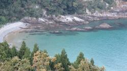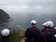 学校を出て東に向かいさっそく山道へ。峠を越えて歩くと太平洋が一望できました。晴れていればもっときれいな景色を見ることができます。