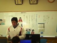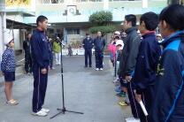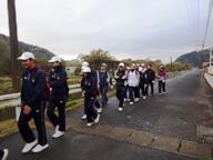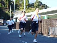おはようございます。今日は島内の道路を使い、駅伝大会を実施します。今年は小学校と合同で行い、小学生は持久走大会です。駅伝のスタート・ゴールは島野浦小学校のそばです。