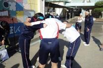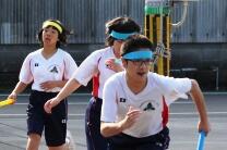 青空の下、持久走・駅伝大会を実施しました。小学生は低学年、中学年、高学年に別れての持久走、中学生は4チームに別れての駅伝でした。