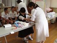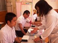 今日は宮崎県健康づくり協会の方に来ていただき、脊柱側彎症検査(2年生)と貧血検査(希望者)を実施しました。どちらもスムーズに終えることができましたが、貧血検査では注射針が刺さる瞬間を見ることができない生徒もいたようです。