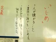 今日の道徳の時間は「私たちの道徳」より「卒業文集 最後の二行」を資料として全学級で使い、各学級担任の指導により、いじめについて考えました。いじめは”人権侵害”で、”絶対に許されない”ことです。