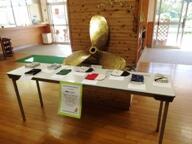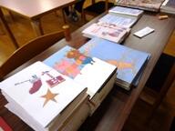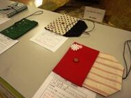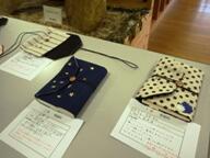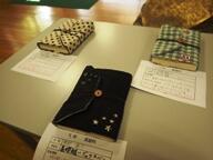 今、島野浦中学校の玄関には3年生が家庭科の授業で製作した「ブックカバー」が展示してあります。