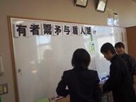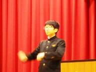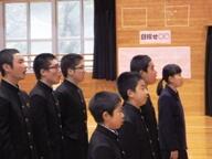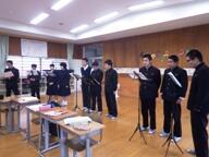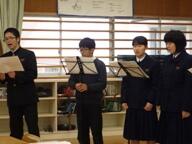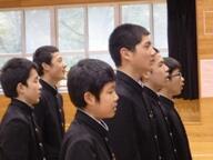 学校では大掃除を行った後、終業式を行いました。式では各学年の代表生徒による2学期の反省と3学期に向けた発表や2学期を振り返った校長先生からの話があり、最後に全員で校歌を歌いました。
