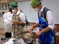 調理後はみんなでおいしく食べました。学級担任の先生も試食し、満面の笑顔で味わっていたそうです。