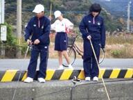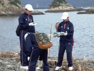海岸には木ぎれやペットボトル、長靴、フロート、ヘルメットなど多くのごみがありました。中には台湾か中国からと思われる長靴などもありました。休憩や昼食をはさみながらの作業だったので、親睦も図れ、何よりも自分たちが生活している「ふるさと島浦」をきれいにすることができました。
