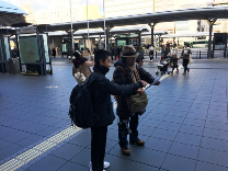 修学旅行の子どもたちは、昨日の朝、京都駅前で島野浦のPR活動を行いました。忙しい中に足を止めて話を聞いていただいたり、子どもたちが自分たちで作ったチラシを受け取っていただいたりした方々、どうもありがとうございました。