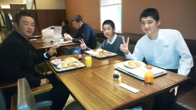 昨日出発した修学旅行の2年生(3人)は元気に朝食を食べ、電車で京都に向かおうとしています。京都駅に到着後、島野浦のPR活動を行い、子どもたちは京都市内の自主研修に向かいます。先ほど電話で聞いたところ、こちらで心配しているほど寒くはないようです。