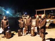 3日間の修学旅行を楽しんだ子どもたちは10時前に島浦に帰ってきました。この冬一番かと思うくらいの寒さでしたが、家族や職員が港で迎えました。子どもたちは多少疲れたようすもありましたが、一人ずつ感想を述べ、、最後に引率者を代表して校長先生があいさつをされました。