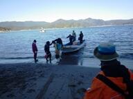 今日はPTAによるサンゴ保全活動として、海岸の清掃を小学校のPTAと合同で行いました。朝8時15分に集合し、海上タクシーで近くまで移動し、小型の船で上陸しました。