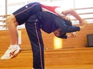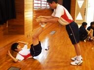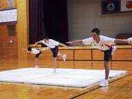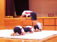 今日の6時間目は保体の授業で、器械運動「マット運動」でした。あいさつの後、子どもたちは自分たちでペアやグループを作り、準備運動を行い授業が始まりました。