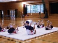 今日のねらいは「グループで協力して、マット運動(シンクロマット)を楽しもう」でした。