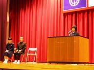 式の後の全校集会では、標語や各種コンクールの表彰や担当の先生による冬休みの過ごし方についての話などがありました。