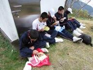 今日から冬休みです。野球部は今朝7時前に島野浦を出発して高鍋農業高校野球場で試合をしました。この試合は、今日、明日、県内の多くの会場で行っている「MIYAZAKI黒潮リーグ」です。島野浦中学校の野球部は部員が5名なので、延岡中学校野球部と合同チームを編制し、出場しています。