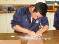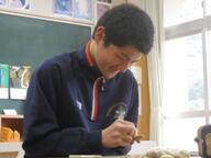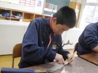 2年生は美術の授業で彫刻に取り組み、「木製のスプーン」を制作しています。これまでもお知らせしてきましたが、いよいよ完成の日が近づいてきました。今日は形を整えたり、紙やすりで磨いたりしていました。
