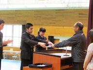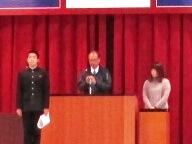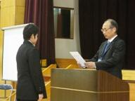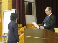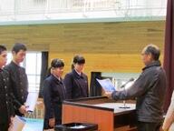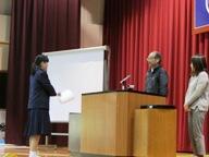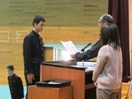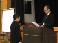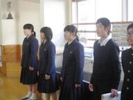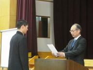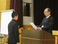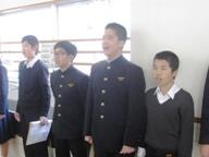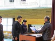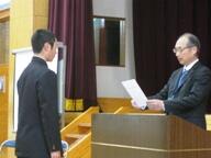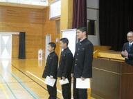 修了式では、1年生3名、2年生3名が一人ずつ校長先生から修了を受け取りました。また、学年の代表の生徒が1年間を振り返り作文を発表しました。また式の後で、漢検に合格した生徒の表彰も行いました。