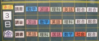 県立高校入試も終わり、3年生は卒業式の練習や掃除など時間割です。