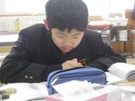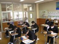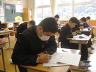 下の写真は今日の3時間目の授業の様子です。1年生は理科、2年生は英語、3年生は国語で、どの授業もこれまで学習してきたことの問題を解いていました。特に3年生は来週の県立高校入試に向けた問題を、時間を意識しながら解いていました。