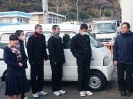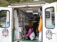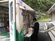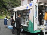 今日は延岡市立図書館の移動図書館「ふくろう号」が島野浦に来て下さいました。午前中は島野浦小学校や漁協前に行き、中学校は昼休み時間でした。