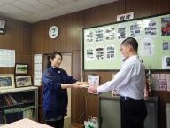 今日は生徒会役員(保体・給食委員長、副委員長)が、栄養士の先生と給食センターの調理員さん、パン屋さんに感謝状を届けに行きました。私たちが毎日おいしい給食を食べことができるのは、調理員さんやパン屋さんのおかげです。 島野浦で食べる給食、そしてパン、どちらも本当においしいです。いつもありがとうございます。