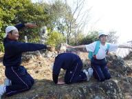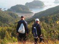 今日は送別遠足です。先日、生徒会役員が準備してくれた”ミッション”をクリアしながら島内ウォークラリーを行っています。4つの班に分かれて学校を8:30に出発し、島野浦神社から”遠見場(とんば)山”にある灯台を目指しました。その後は全員で景色を楽しみながら山道を進み、学校に戻ります。学校に帰ったら火おこしを使って作った火で炭を燃やし、バーベキューを楽しみます。