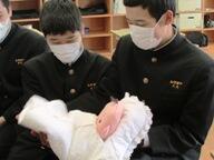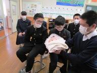 3年生は、今日、保健室の先生(養護教諭)から「高校デビューの皆さんへ」と題して性教育をしていただきました。スライドを使った思春期の体の変化を説明したり、赤ちゃんと同じ大きさ、重さの人形を持たせたりして、これから親元を離れていく子どもたちにとって、役に立つお話でした。