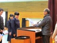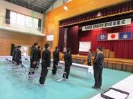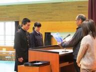 卒業式の予行練習の後、3年生の「全校児童生徒」と「皆勤賞」の表彰を行いました。「皆勤賞」は入学以来3年間、無欠席の生徒です。今年の「皆勤賞」は5名でした。