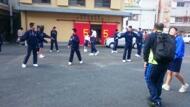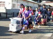 〈 説明 〉 〈 神社下で披露する島っ子ソーランの確認 〉 〈 祭りイス・机準備 〉