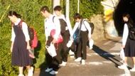 修学旅行での活動の一つとして、島浦のパンフレット配布を行います。