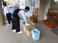 登校時にゴミ袋をもってごみを拾いながら登校 ↑ 玄関で分別 【 離島センター前 】 【 中学校 玄関前 】