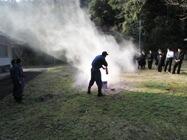 【 火元から遠いところへ避難 】 【 避難場所に集合 】 【 消防団の方の講話 】 【 消火器の使い方 実演 】 【 お礼の言葉 】