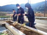 技術科で栽培したネギの収穫をしました。ほうれんそうや白菜も栽培しているので、収穫が楽しみです。