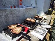 【 山に咲くつつじ 】 【 運搬終了 】 【 山頂での食事準備 アジの開き、キビナゴ・タレの干物焼き中】