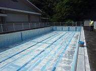 6月12日 プール清掃を実施しました。水泳授業にむけて全校生徒・全職員で清掃しました。
