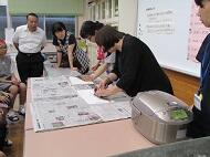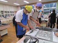 家庭でも、島でとれた魚をさばいて調理してください。保護者の皆様、お忙しい中、講師として指導していただきありがとうございました。