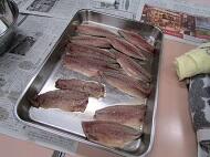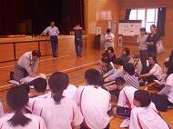 いた 青アジ 約120匹】 【保護者(講師)によるデモンストレーション】 【3年生が1年生に指導】 【1年生チャレンジ中】